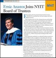 Lifetime Emmy Award winner Ernie Anastos has been the voice of Big Apple news for more than three decades. In 1985, the New York Institute of Technology named him Anchorman of the Year; last year, the school granted him an honorary doctorate. This month, Anastos – now anchoring for WNYW-TV – joined the NYIT Board of Trustees. Read more...