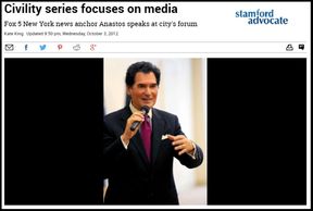 STAMFORD -- After an estimated 15,000 newscasts over 40 years in broadcasting, New York Fox 5 anchor Ernie Anastos said he would like to see the media give up the "if it bleeds, it leads" template in favor of more balanced coverage. Read more...